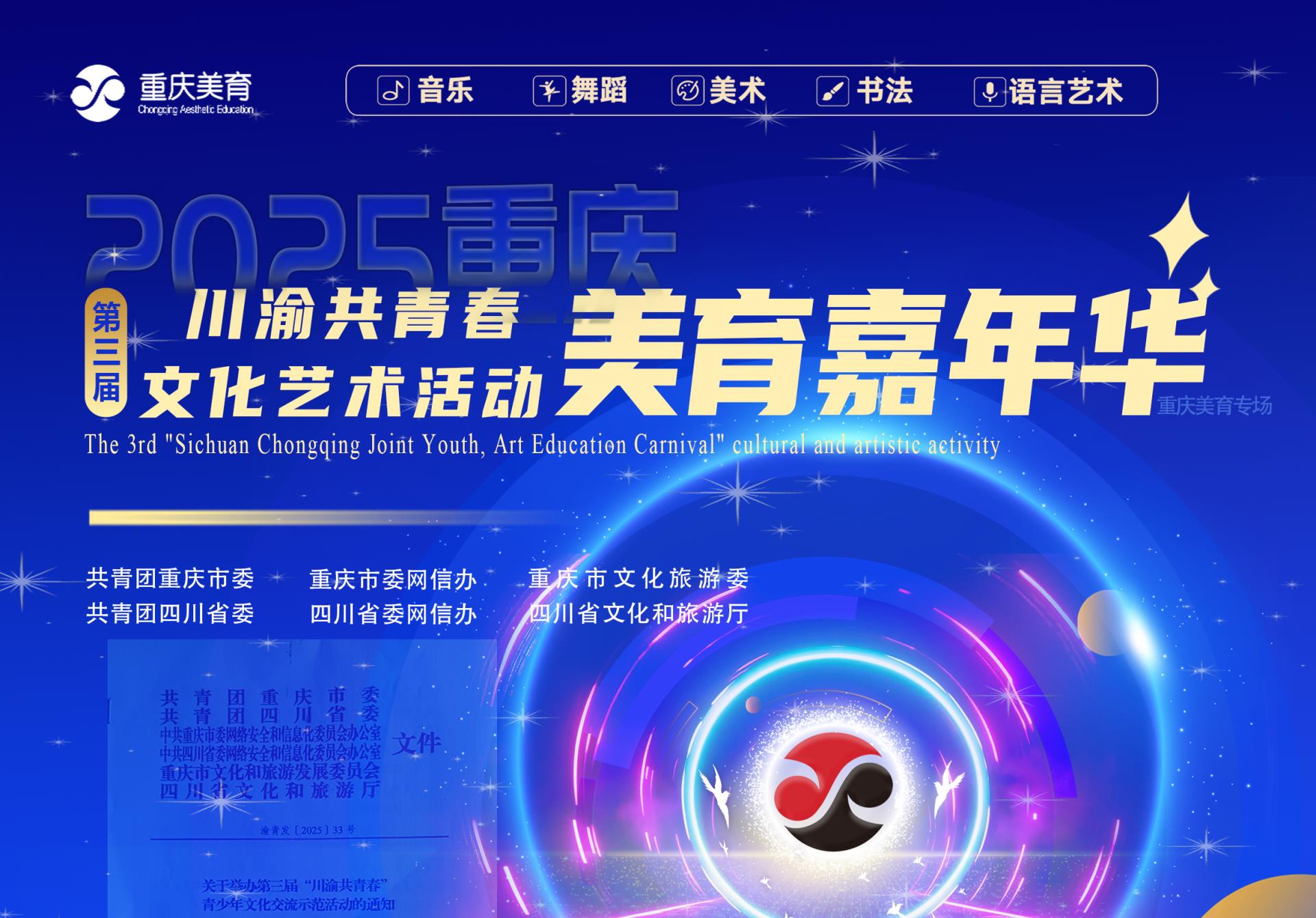《川渝共青春 美育嘉年华》《重庆市美育教学成果展》《重庆市美育教师素养提升工程》《重庆市青少年美育素质测评》等。